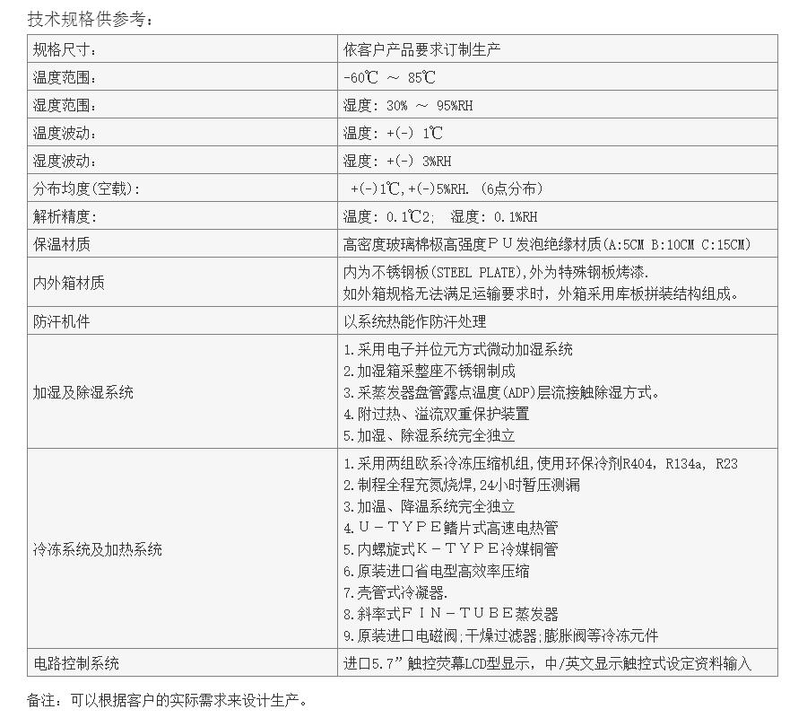 應用范圍:步入式恒溫恒濕室從而判斷產品的可靠性及穩定性能等參數是否合格。將提供給您預測和改進產品的質量和可靠性的依據。特別是針對國防工業、航天工業、自動化零組件汽車 部件、電子電器件、塑膠、化工、制藥工業等行業的相關產品之耐熱、耐寒測試,為產業界提供大型零件,半成品,成品之大型溫濕度測試環境空間,適合于測試產品量多、體積大之試驗設備。