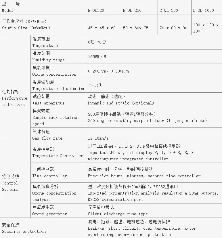 符合國際標準的不銹鋼試驗倉及無聲放電制造臭氧的全封閉氣體回路,整個臭氧氣體的發生和捕捉均是密閉的回路,確保人身安全。在1000pphm的范圍內任意設定臭氧濃度。
